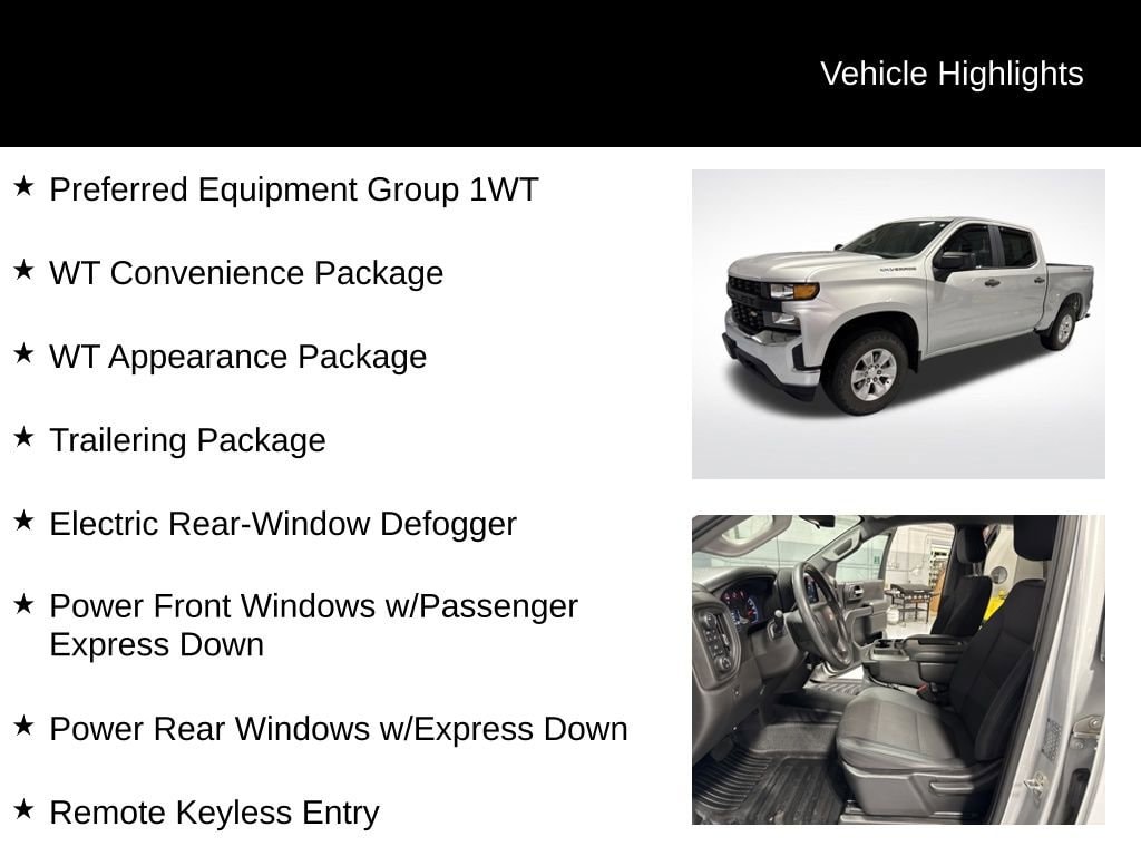 The 2019 Silverado 1500 WT Crew Cab is a no-nonsense, dependable work truck with the right mix of technology, towing ability, and interior space perfect for contractors, fleets, or anyone who needs a tough daily driver.