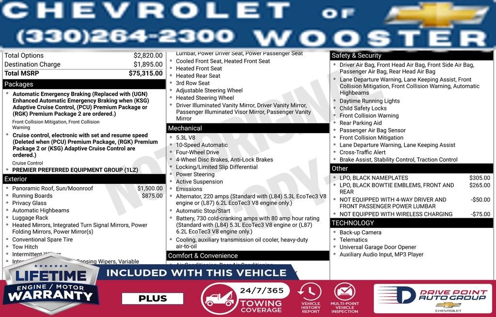This 2023 Tahoe Premier 4WD delivers full-size comfort, bold styling, and advanced technology. Equipped with the Premier Preferred Equipment Group, Panoramic Roof, Running Boards, and Premium Sound, itâs built for families, travel, and towing with upscale refinement.