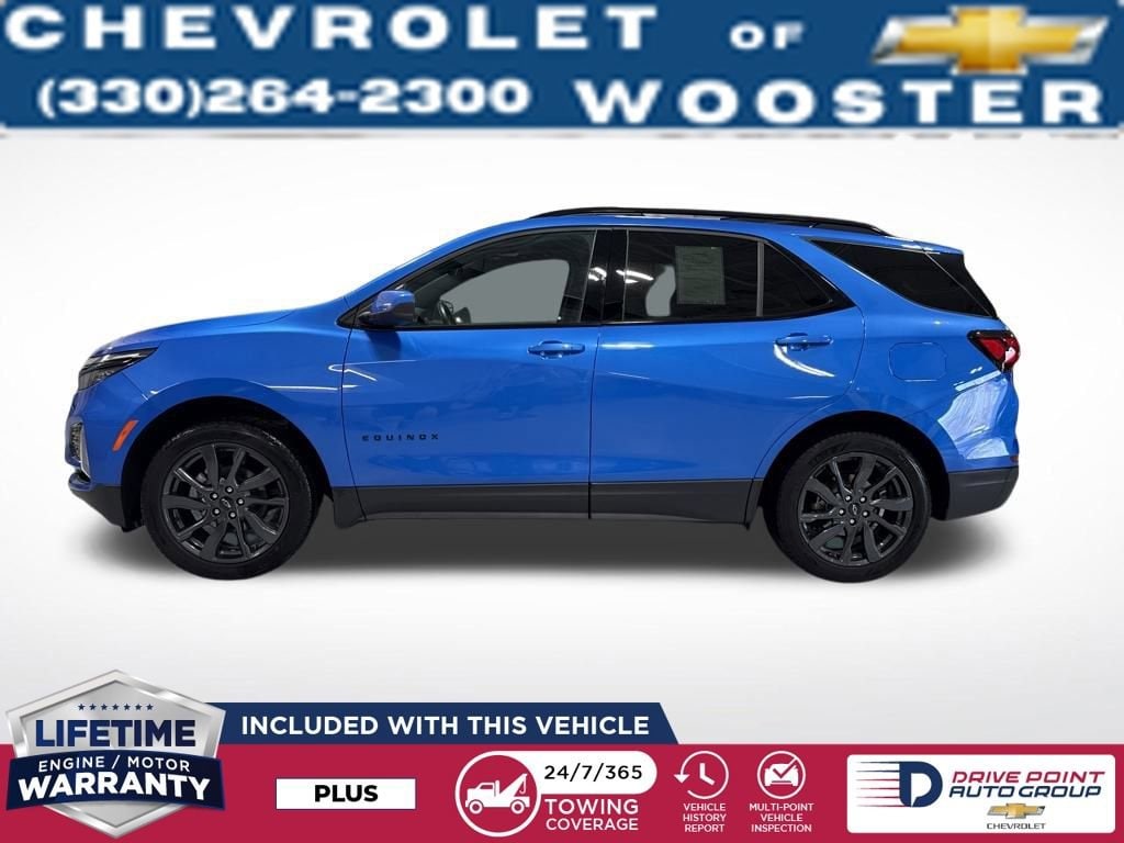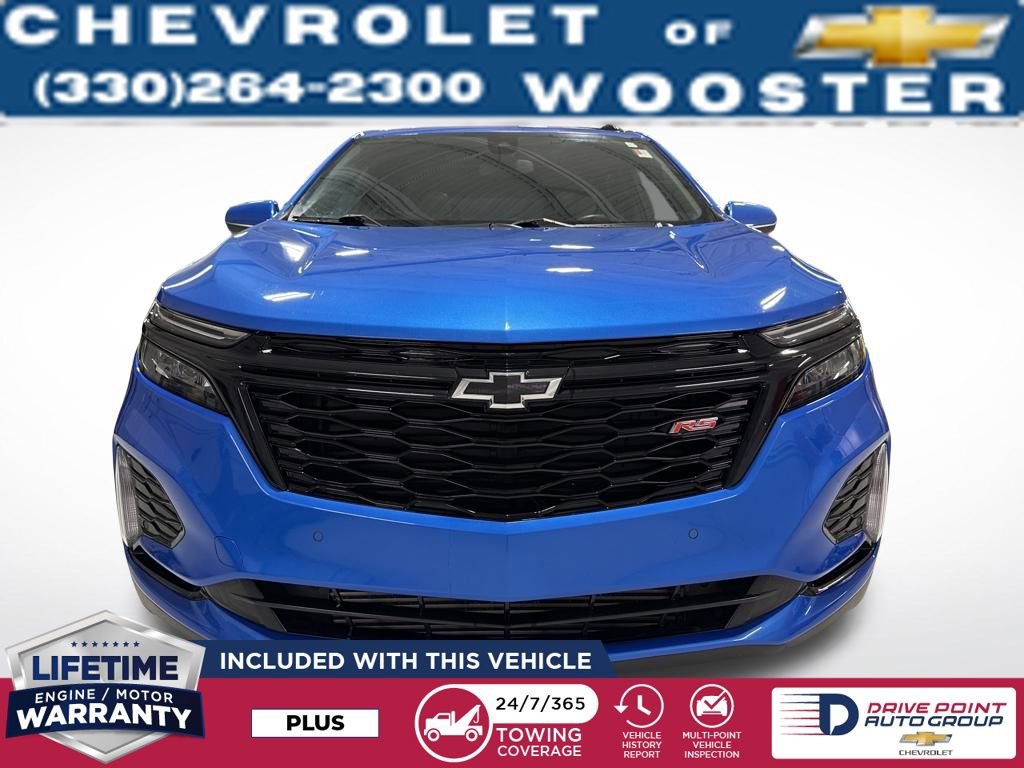The 2024 Chevrolet Equinox RS blends bold sport styling with everyday versatility. Finished in eye-catching Riptide Blue Metallic with RS black accents and red-stitched interior, this SUV delivers turbocharged performance, advanced safety technology, and modern connectivity.