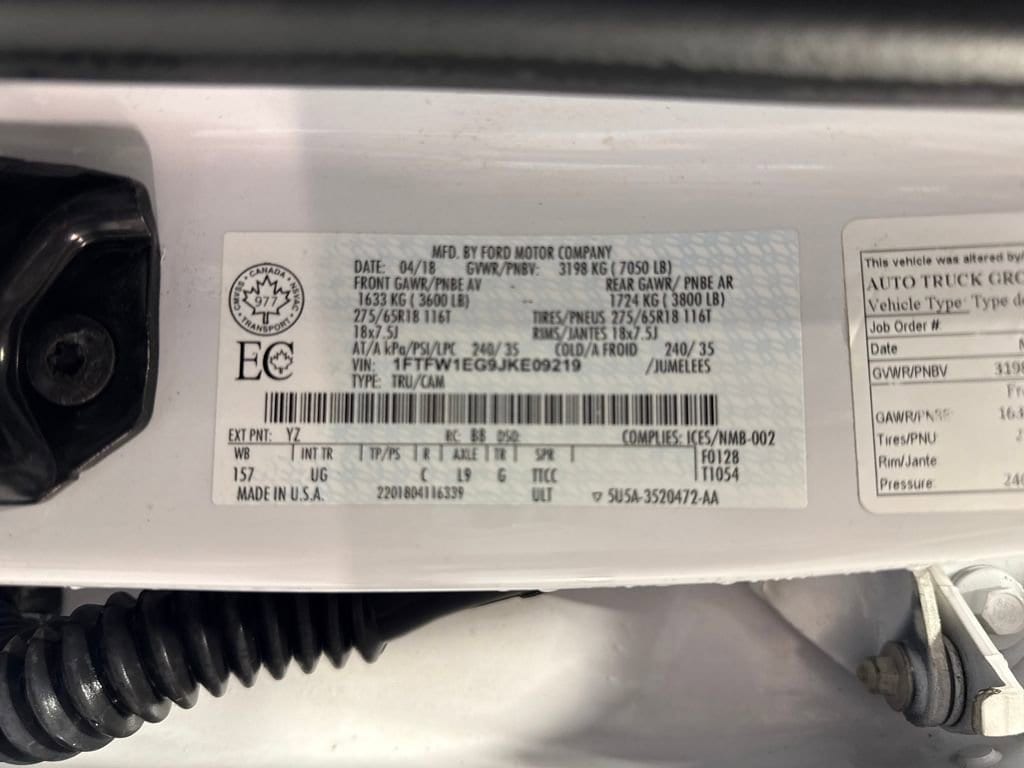4WD, 3.31 Axle Ratio, 4-Wheel Disc Brakes, ABS brakes, Air Conditioning, Brake assist, Class IV Trailer Hitch Receiver, Compass, Delay-off headlights, Driver door bin, Dual front impact airbags, Dual front side impact airbags, Electronic Stability Control, Exterior Parking Camera Rear, Front anti-roll bar, Front wheel independent suspension, Fully automatic headlights, Low tire pressure warning, Occupant sensing airbag, Outside temperature display, Overhead airbag, Passenger door bin, Passenger vanity mirror, Power steering, Rear step bumper, Speed-sensing steering, Split folding rear seat, SYNC 3, Tachometer, Telescoping steering wheel, Tilt steering wheel, Traction control, Variably intermittent wipers, Voltmeter, 4WD.