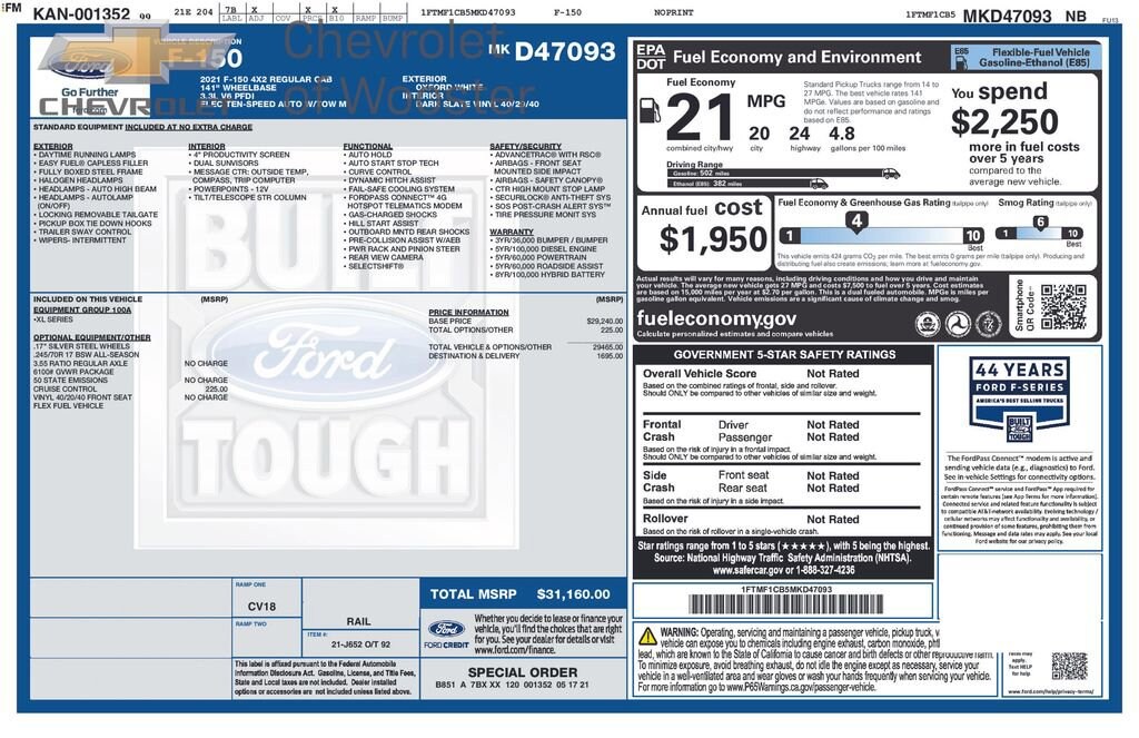The 2021 Ford F-150 XL Regular Cab is a dependable, no-nonsense pickup designed to handle tough jobs with efficiency and durability. Perfect for contractors, fleet use, or anyone needing a reliable work truck.