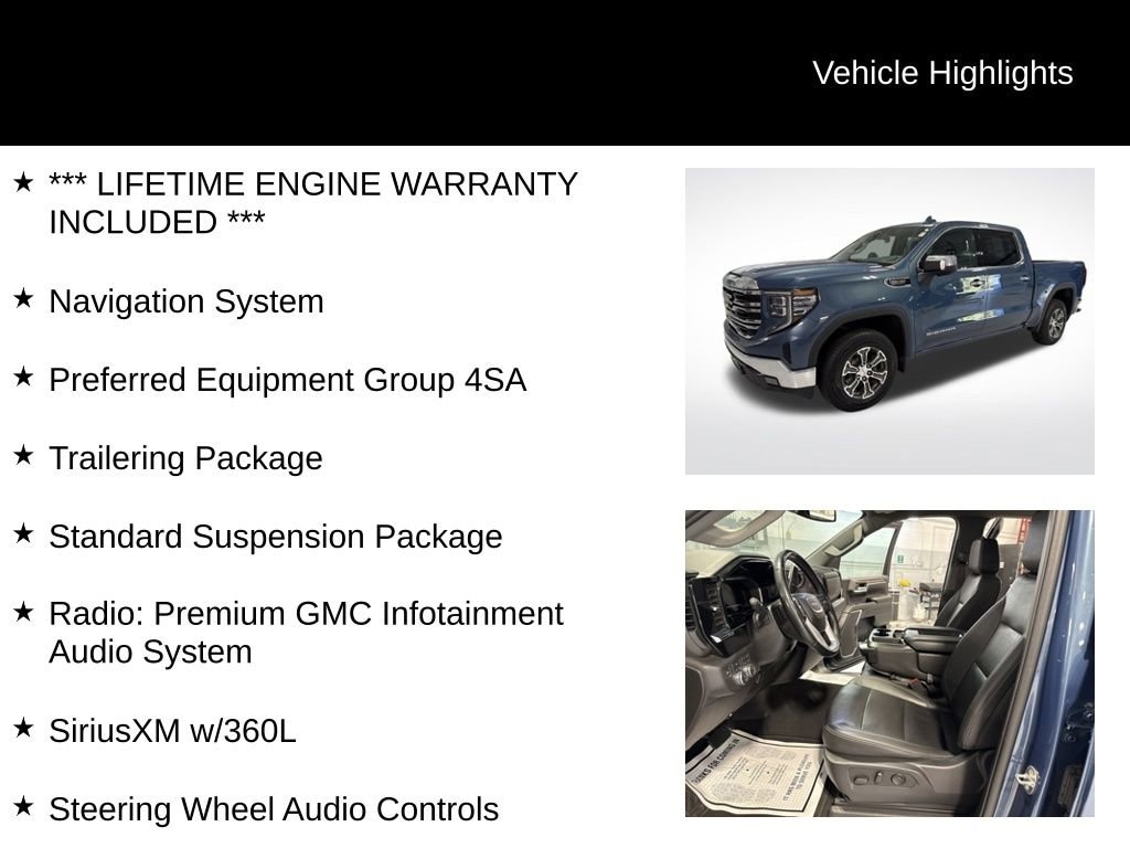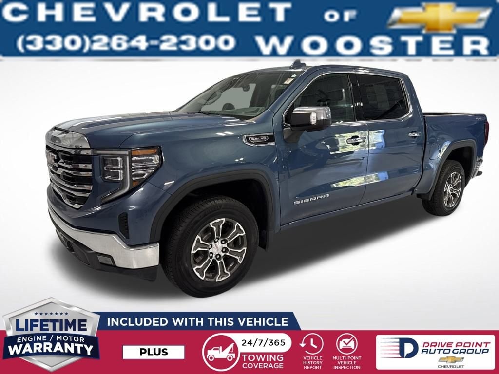 Downpour Metallic 2024 GMC Sierra 1500 SLT 4D Crew Cab 4WD EcoTec3 5.3L V8 10-Speed Automatic*** LIFETIME ENGINE WARRANTY INCLUDED ***, 10-Speed Automatic, 4WD, Black Leather, 120-Volt Interior Power Outlet, 170 Amp Alternator, 2 Charge/Data USB Ports, 2 Type-C Charge-Only Rear USB Ports, 3.23 Rear Axle Ratio, 6-Speaker Audio System Feature, Auto-Locking Rear Differential, Auxiliary External Transmission Oil Cooler, Chrome Header & Chrome Grille Insert Bars, Color-Keyed Carpeting Floor Covering, Deep-Tinted Glass, Electric Rear-Window Defogger, Front Frame-Mounted Black Recovery Hooks, Front Rain-Sensing Wipers, GMC Connected Access Capable, HD Rear Vision Camera, Heated Driver & Front Outboard Passenger Seating, Keyless Open & Start, LED Cargo Area Lighting, Manual Tilt-Wheel & Telescoping Steering Column, Navigation System, OnStar & GMC Connected Services Capable, Perimeter Lighting, Power Door Locks, Power Front Passenger Windows w/Express Up/Down, Power Front Windows w/Driver Express Up/Down, Power Rear Windows w/Express Down, Preferred Equipment Group 4SA, Push Button Start, Radio: Premium GMC Infotainment Audio System, Rear Wheelhouse Liners, Remote Vehicle Starter System, SiriusXM w/360L, Standard Suspension Package, Steering Wheel Audio Controls, Theft Deterrent System (Unauthorized Entry), Trailering Package, Wheels: 18 x 8.5 6-Spoke Machined Aluminum, Wi-Fi Hotspot Capable, Wireless Apple CarPlay/Wireless Android Auto.Please inquire for a personalized Video Walk-Around of this vehicle! Nationwide shipping available!Chevrolet of Wooster stands out as a top-tier Chevy dealership in the area, renowned for its extensive selection of new and used vehicles, a dedicated team of knowledgeable sales professionals, and a stellar service department that prioritizes customer satisfaction. They are widely recognized for their commitment to providing a transparent and friendly car buying experience, with a focus on understanding individual needs and tailoring options accordingly, while also offering competitive pricing and a strong reputation for quality maintenance and repairs. Whether you're looking for a new Chevy truck, a reliable used car, or expert service, Chevrolet of Wooster consistently delivers a positive experience for drivers in the Wooster community. Key points: Large vehicle selection: Wide variety of new and used Chevrolet models to choose from. Knowledgeable staff: Experienced sales team ready to answer questions and guide customers. Quality service department: Reliable maintenance and repair services for all Chevrolet vehicles. Customer-centric approach: Prioritizing customer satisfaction and building long-term relationships. Community involvement: Active presence and support for local initiatives in the Wooster area. We carry All Makes and Models** We have other vehicles with Apple CarPlay, Android Auto, Heads Up Display, Lane Departure System, Blind Spot Monitor, Heated Steering Wheel, Remote Start, Navigation, Rear Entertainment System, DVD Player, 3rd Row Seats, Backup Camera, Panoramic Sunroof, Bluetooth, Hands-Free, Adaptive Cruise Control, Leather Seats, Keyless Entry, Heated Seats, Tow Hitch, Tow Hooks, 4-Wheel Drive and All-wheel Drive, Active Park Assist, 360 degree Surround View Camera, Brake Assist, Power Liftgate, Third Row Seating, Keyless Entry. Although every reasonable effort has been made to ensure the accuracy of the information contained on this site, absolute accuracy cannot be guaranteed.