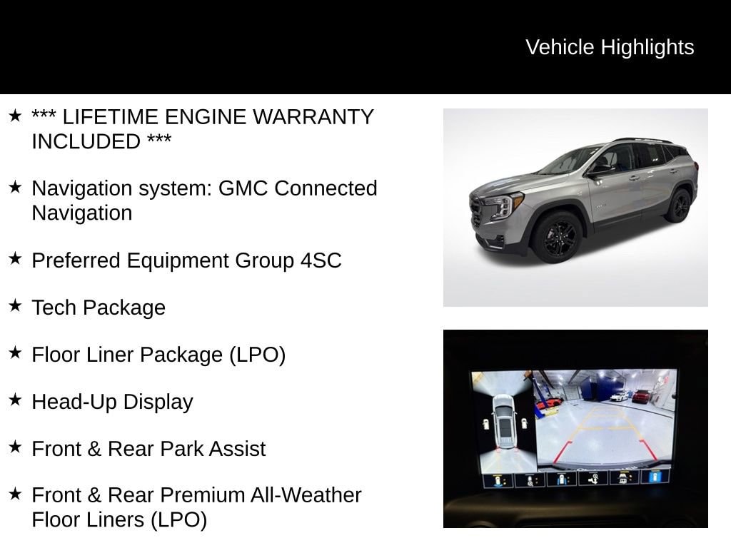 *** LIFETIME ENGINE WARRANTY INCLUDED ***, AWD, Floor Liner Package (LPO), Front & Rear Park Assist, Front & Rear Premium All-Weather Floor Liners (LPO), HD Surround Vision, Head-Up Display, Integrated Cargo Liner (LPO), Navigation system: GMC Connected Navigation, Preferred Equipment Group 4SC, Tech Package.