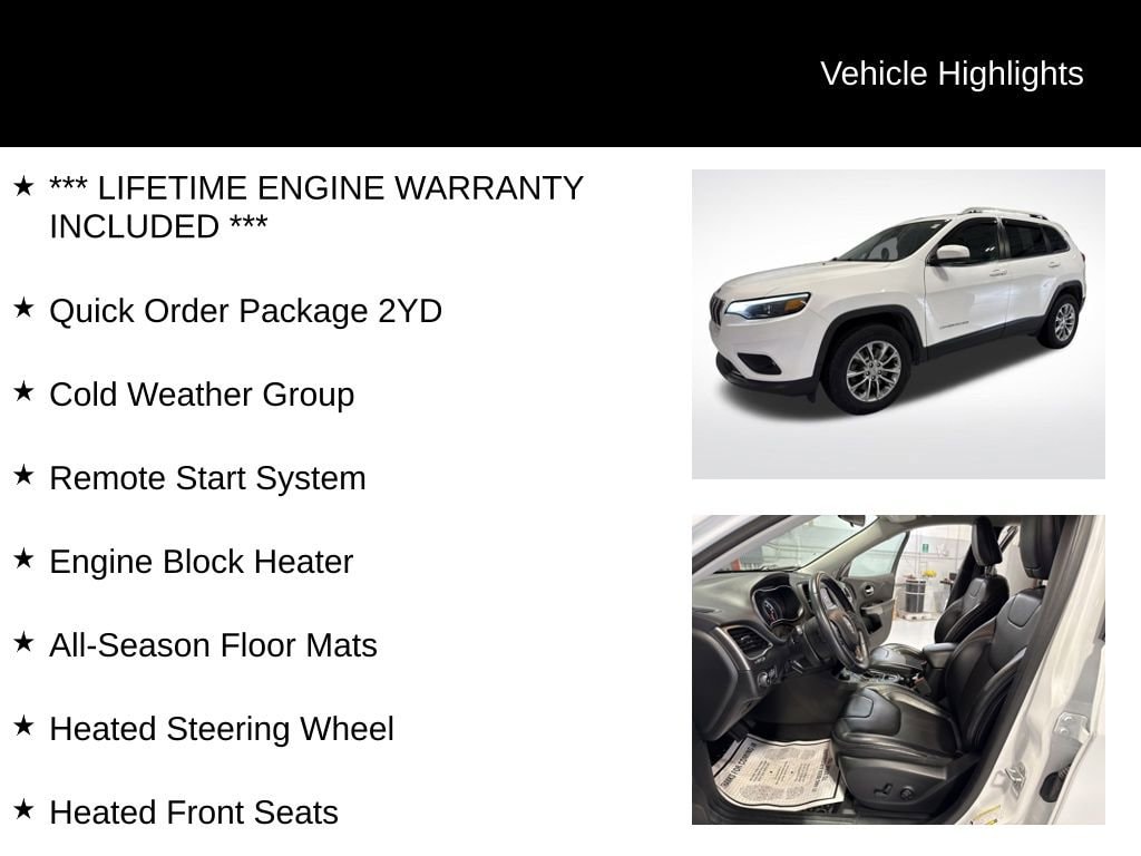 Bright White Clearcoat 2019 Jeep Cherokee Latitude Plus 4D Sport Utility 4WD 2.0L I4 DOHC 9-Speed 948TE Automatic