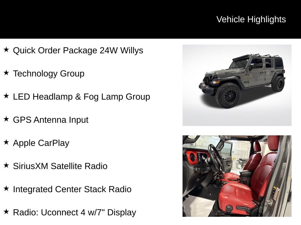 Recent Arrival! Priced below KBB Fair Purchase Price!Sting-Gray Clearcoat 2020 Jeep Wrangler Unlimited Willys 4D Sport Utility 4WD 3.6L V6 24V VVT 8-Speed Automatic4-Wheel Drive Swing Gate Decal, 7.0 Touchscreen Display, Air Conditioning w/Auto Temperature Control, Air Filtering, Anti-Lock 4-Wheel Disc HD Brakes, Anti-Spin Differential Rear Axle, Apple CarPlay, Automatic Headlamps, Black Grille, Black Trail Rated Badge, Cluster 7.0 TFT Color Display, Deep Tint Sunscreen Windows, Front 1-Touch Down Power Windows, Front LED Fog Lamps, Google Android Auto, GPS Antenna Input, Integrated Center Stack Radio, Leather Wrapped Steering Wheel, LED Headlamp & Fog Lamp Group, LED Reflector Headlamps, Matte Black Jeep Badge, MOPAR All-Weather Floor Mats, Power Heated Mirrors, Quick Order Package 24W Willys, Radio: Uconnect 4 w/7 Display, Remote Keyless Entry, Security Alarm, SiriusXM Satellite Radio, Speed Sensitive Power Locks, Sun Visors w/Illuminated Vanity Mirrors, Technology Group, USB Host Flip, Wheels: 17 x 7.5 Moab Black Aluminum, Willys, Willys Hood Decal, Wrangler Decal.Please inquire for a personalized Video Walk-Around of this vehicle! Nationwide shipping available!Chevrolet of Wooster stands out as a top-tier Chevy dealership in the area, renowned for its extensive selection of new and used vehicles, a dedicated team of knowledgeable sales professionals, and a stellar service department that prioritizes customer satisfaction. They are widely recognized for their commitment to providing a transparent and friendly car buying experience, with a focus on understanding individual needs and tailoring options accordingly, while also offering competitive pricing and a strong reputation for quality maintenance and repairs. Whether you're looking for a new Chevy truck, a reliable used car, or expert service, Chevrolet of Wooster consistently delivers a positive experience for drivers in the Wooster community. Key points: Large vehicle selection: Wide variety of new and used Chevrolet models to choose from. Knowledgeable staff: Experienced sales team ready to answer questions and guide customers. Quality service department: Reliable maintenance and repair services for all Chevrolet vehicles. Customer-centric approach: Prioritizing customer satisfaction and building long-term relationships. Community involvement: Active presence and support for local initiatives in the Wooster area. We carry All Makes and Models** We have other vehicles with Apple CarPlay, Android Auto, Heads Up Display, Lane Departure System, Blind Spot Monitor, Heated Steering Wheel, Remote Start, Navigation, Rear Entertainment System, DVD Player, 3rd Row Seats, Backup Camera, Panoramic Sunroof, Bluetooth, Hands-Free, Adaptive Cruise Control, Leather Seats, Keyless Entry, Heated Seats, Tow Hitch, Tow Hooks, 4-Wheel Drive and All-wheel Drive, Active Park Assist, 360 degree Surround View Camera, Brake Assist, Power Liftgate, Third Row Seating, Keyless Entry. Although every reasonable effort has been made to ensure the accuracy of the information contained on this site, absolute accuracy cannot be guaranteed.