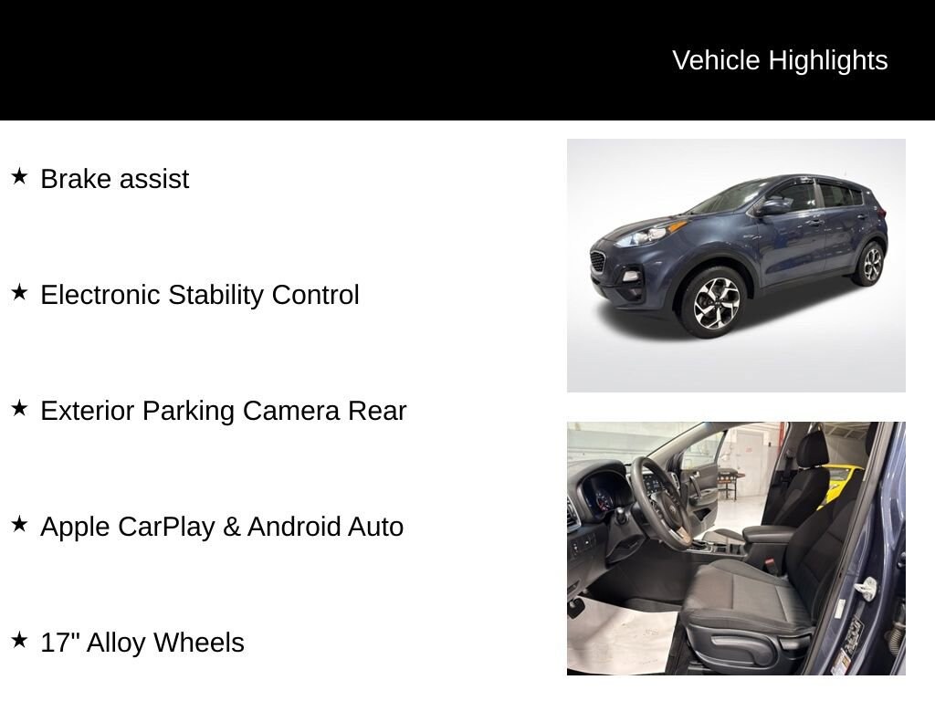 Recent Arrival! Priced below KBB Fair Purchase Price!Pacific Blue 2022 Kia Sportage LX 4D Sport Utility AWD 2.4L I4 DGI DOHC 16V 6-Speed Automatic Electronic with OverdriveAWD, 17 Alloy Wheels, Apple CarPlay & Android Auto, Brake assist, Electronic Stability Control, Exterior Parking Camera Rear, 4-Wheel Disc Brakes, 6 Speakers, 6-Way Manual Adjustable Driver's Seat, ABS brakes, Air Conditioning, Alloy wheels, AM/FM radio, Auto High-beam Headlights, Axle Ratio: 3.195, Bumpers: body-color, Carpeted Floor Mats, Cloth Seat Trim, Delay-off headlights, Driver door bin, Driver vanity mirror, Dual front impact airbags, Dual front side impact airbags, Four wheel independent suspension, Front anti-roll bar, Front Bucket Seats, Front Center Armrest, Front fog lights, Front reading lights, Fully automatic headlights, Illuminated entry, Low tire pressure warning, Occupant sensing airbag, Outside temperature display, Overhead airbag, Overhead console, Panic alarm, Passenger door bin, Passenger vanity mirror, Power door mirrors, Power steering, Power windows, Radio: AM/FM Audio System, Rear anti-roll bar, Rear seat center armrest, Rear window defroster, Rear window wiper, Remote keyless entry, Security system, Speed control, Speed-sensing steering, Split folding rear seat, Spoiler, Steering wheel mounted audio controls, Tachometer, Telescoping steering wheel, Tilt steering wheel, Traction control, Trip computer, Variably intermittent wipers, AWD, 17 Alloy Wheels, Apple CarPlay & Android Auto, Brake assist, Electronic Stability Control, Exterior Parking Camera Rear.Please inquire for a personalized Video Walk-Around of this vehicle! Nationwide shipping available!Chevrolet of Wooster stands out as a top-tier Chevy dealership in the area, renowned for its extensive selection of new and used vehicles, a dedicated team of knowledgeable sales professionals, and a stellar service department that prioritizes customer satisfaction. They are widely recognized for their commitment to providing a transparent and friendly car buying experience, with a focus on understanding individual needs and tailoring options accordingly, while also offering competitive pricing and a strong reputation for quality maintenance and repairs. Whether you're looking for a new Chevy truck, a reliable used car, or expert service, Chevrolet of Wooster consistently delivers a positive experience for drivers in the Wooster community. Key points: Large vehicle selection: Wide variety of new and used Chevrolet models to choose from. Knowledgeable staff: Experienced sales team ready to answer questions and guide customers. Quality service department: Reliable maintenance and repair services for all Chevrolet vehicles. Customer-centric approach: Prioritizing customer satisfaction and building long-term relationships. Community involvement: Active presence and support for local initiatives in the Wooster area. We carry All Makes and Models** We have other vehicles with Apple CarPlay, Android Auto, Heads Up Display, Lane Departure System, Blind Spot Monitor, Heated Steering Wheel, Remote Start, Navigation, Rear Entertainment System, DVD Player, 3rd Row Seats, Backup Camera, Panoramic Sunroof, Bluetooth, Hands-Free, Adaptive Cruise Control, Leather Seats, Keyless Entry, Heated Seats, Tow Hitch, Tow Hooks, 4-Wheel Drive and All-wheel Drive, Active Park Assist, 360 degree Surround View Camera, Brake Assist, Power Liftgate, Third Row Seating, Keyless Entry. Although every reasonable effort has been made to ensure the accuracy of the information contained on this site, absolute accuracy cannot be guaranteed.