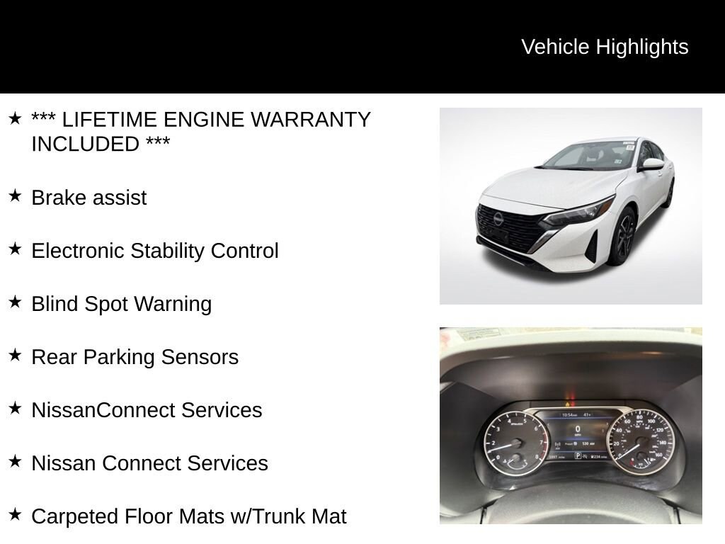Recent Arrival! Odometer is 1079 miles below market average!Fresh Powder 2025 Nissan Sentra SV 4D Sedan FWD 2.0L I4 DOHC CVT with Xtronic*** LIFETIME ENGINE WARRANTY INCLUDED ***, CVT with Xtronic, Charcoal Cloth, 16 Alloy Wheels, Blind Spot Warning, Brake assist, Carpeted Floor Mats w/Trunk Mat, Electronic Stability Control, Illuminated entry, Nissan Connect Services, NissanConnect featuring Apple CarPlay and Android Auto, NissanConnect Services, Rear Parking Sensors, Wi-Fi Hotspot, 4-Wheel Disc Brakes, 8 Speakers, ABS brakes, Air Conditioning, Alloy wheels, AM/FM radio: SiriusXM, Auto High-beam Headlights, Bumpers: body-color, Delay-off headlights, Driver door bin, Driver vanity mirror, Dual front impact airbags, Dual front side impact airbags, Four wheel independent suspension, Front anti-roll bar, Front Bucket Seats, Front Center Armrest, Front reading lights, Fully automatic headlights, Knee airbag, Low tire pressure warning, Occupant sensing airbag, Outside temperature display, Overhead airbag, Overhead console, Panic alarm, Passenger door bin, Passenger vanity mirror, Power door mirrors, Power steering, Power windows, Radio data system, Radio: AM/FM w/RDS/MP3/Aux-In, Rear anti-roll bar, Rear side impact airbag, Rear window defroster, Remote keyless entry, Security system, Speed control, Speed-sensing steering, Split folding rear seat, Steering wheel mounted audio controls, Tachometer, Telescoping steering wheel, Tilt steering wheel, Traction control, Trip computer, Upgraded Cloth Seat Trim, Variably intermittent wipers, CVT with Xtronic, Charcoal Cloth, 16 Alloy Wheels, Blind Spot Warning, Brake assist, Carpeted Floor Mats w/Trunk Mat, Electronic Stability Control, Illuminated entry, Nissan Connect Services, NissanConnect featuring Apple CarPlay and Android Auto, NissanConnect Services, Rear Parking Sensors, Wi-Fi Hotspot.Please inquire for a personalized Video Walk-Around of this vehicle! Nationwide shipping available!Chevrolet of Wooster stands out as a top-tier Chevy dealership in the area, renowned for its extensive selection of new and used vehicles, a dedicated team of knowledgeable sales professionals, and a stellar service department that prioritizes customer satisfaction. They are widely recognized for their commitment to providing a transparent and friendly car buying experience, with a focus on understanding individual needs and tailoring options accordingly, while also offering competitive pricing and a strong reputation for quality maintenance and repairs. Whether you're looking for a new Chevy truck, a reliable used car, or expert service, Chevrolet of Wooster consistently delivers a positive experience for drivers in the Wooster community. Key points: Large vehicle selection: Wide variety of new and used Chevrolet models to choose from. Knowledgeable staff: Experienced sales team ready to answer questions and guide customers. Quality service department: Reliable maintenance and repair services for all Chevrolet vehicles. Customer-centric approach: Prioritizing customer satisfaction and building long-term relationships. Community involvement: Active presence and support for local initiatives in the Wooster area. We carry All Makes and Models** We have other vehicles with Apple CarPlay, Android Auto, Heads Up Display, Lane Departure System, Blind Spot Monitor, Heated Steering Wheel, Remote Start, Navigation, Rear Entertainment System, DVD Player, 3rd Row Seats, Backup Camera, Panoramic Sunroof, Bluetooth, Hands-Free, Adaptive Cruise Control, Leather Seats, Keyless Entry, Heated Seats, Tow Hitch, Tow Hooks, 4-Wheel Drive and All-wheel Drive, Active Park Assist, 360 degree Surround View Camera, Brake Assist, Power Liftgate, Third Row Seating, Keyless Entry. Although every reasonable effort has been made to ensure the accuracy of the information contained on this site, absolute accuracy cannot be guaranteed.
