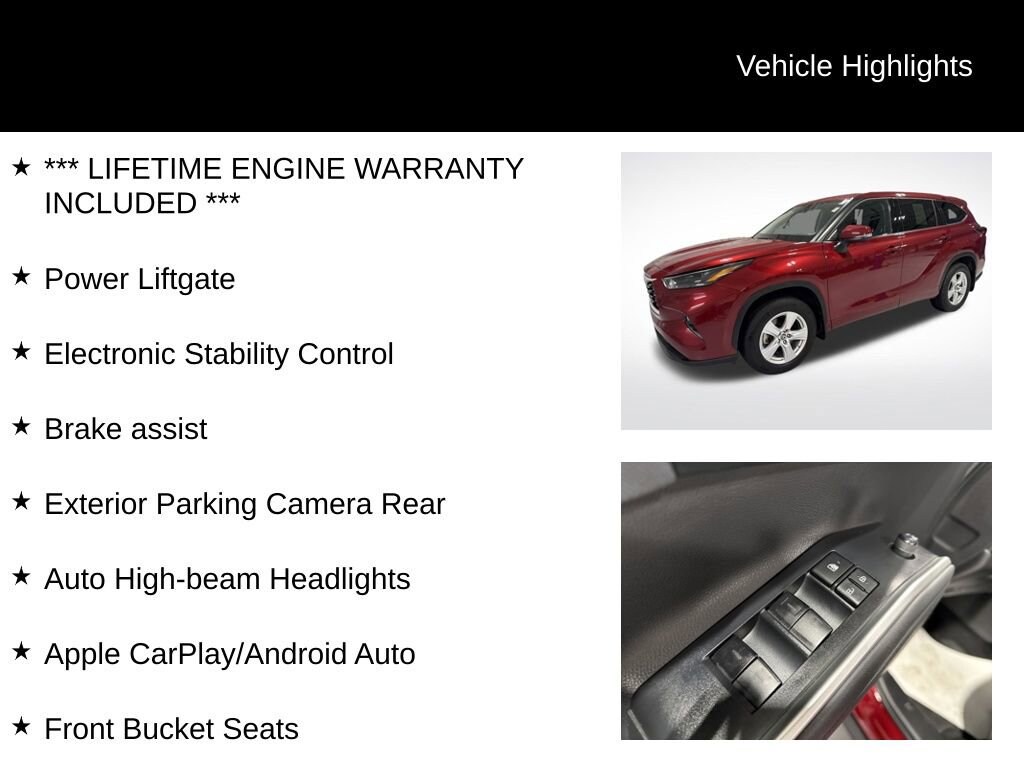 Ruby Flare Pearl 2022 Toyota Highlander LE 4D Sport Utility AWD 3.5L V6 DOHC 8-Speed Automatic