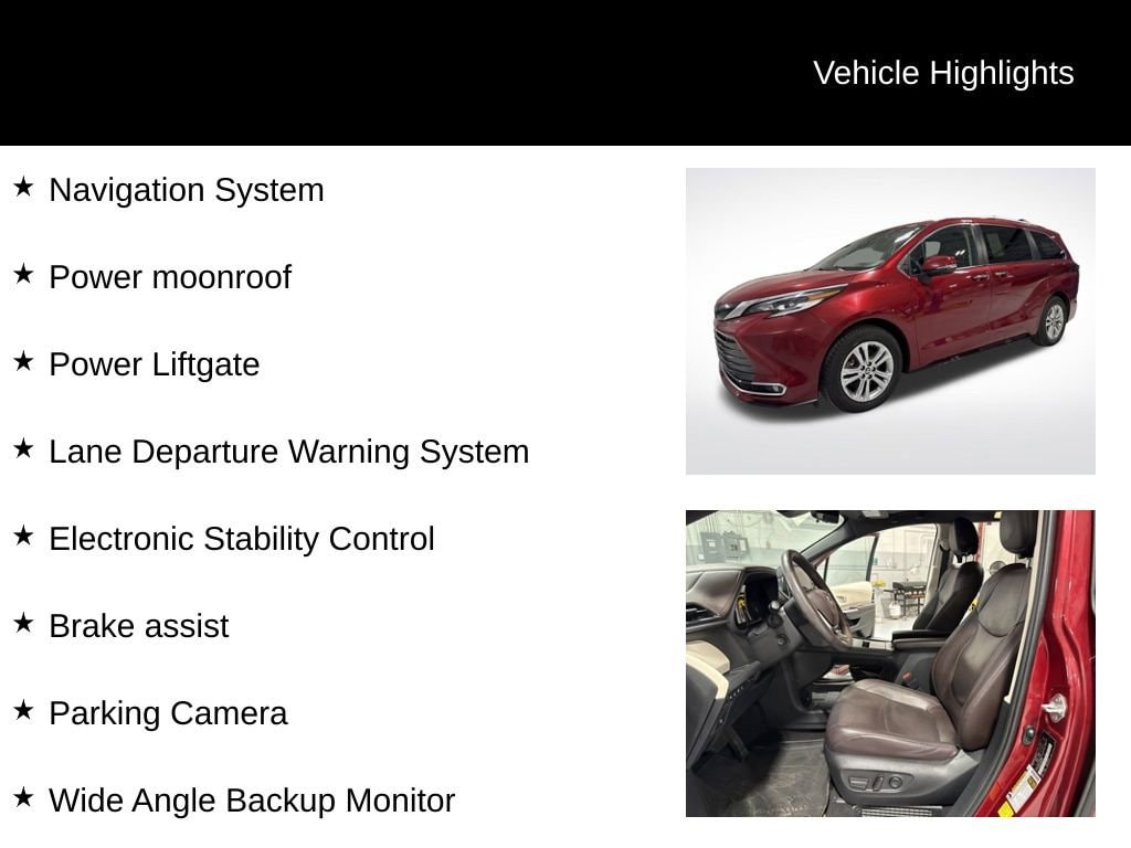 Red 2022 Toyota Sienna Platinum 7 Passenger 4D Passenger Van AWD 2.5L I4 CVT